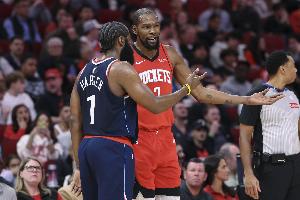 记者提到上次快船和火箭交手,投进了20个三分,对此杜兰特说:“我觉得我们的身体对抗强度提升了。而且,詹姆斯·哈登没上场也有帮助,少了一个能创造进攻、带动全队的人。但我觉得我们还是必须在身体对抗方面下功夫。”