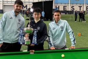 新科世界冠军赵心童受俱乐部邀请,在阿提哈德球场观看了曼城对阵勒沃库森的欧冠比赛,次日又前往球队训练基地参与内容拍摄活动。赵心童在绿茵般的台呢上向后卫刘易斯和门将特拉福德展示了斯诺克技艺。
