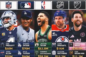 美国五大联盟薪资:大谷翔平7000万!梅西2040万、塔图姆6280万