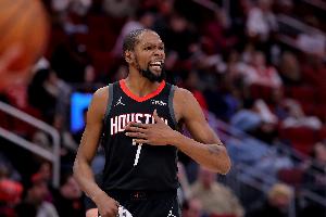 火箭球星杜兰特首节虽然手感一般,但也是先发球员里手感最好的一个,中距离还是非常稳。