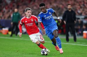 欧冠1/8决赛附加赛首回合,皇马做客光明球场1-0战胜本菲卡。比赛第50分钟,维尼修斯破门,随后被普雷斯蒂亚尼种族歧视言语攻击,维尼修斯向裁判投诉后,裁判启动反种族歧视协议,比赛一度暂停。