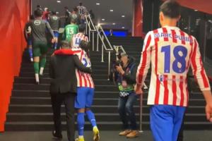 体育资讯02月25日讯 欧冠淘汰赛附加赛次回合,马竞4-1总比分7-4淘汰布鲁日,赛后主帅西蒙尼在球员通道与球员一一握手,当卢克曼经过时,西蒙尼难掩笑意热情拥抱。