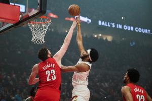 体育资讯2月2日讯 NBA常规赛,开拓者半场48-57落后骑士。